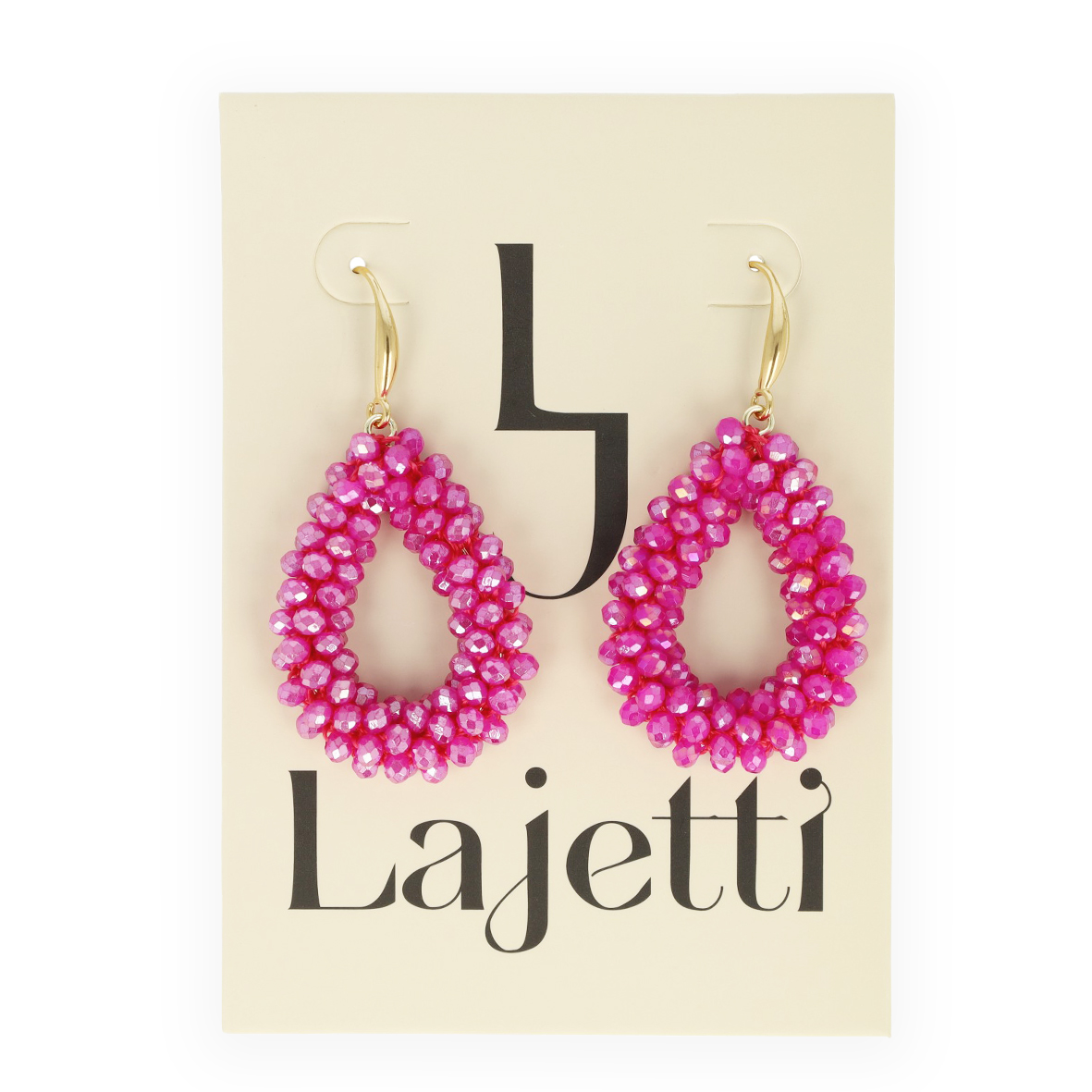 Op zoek naar een paar unieke en elegante oorbellen die jouw outfit laten stralen? De fuchsia druppel oorbellen van Lajetti zijn dé perfecte keuze! Deze schitterende handgemaakte druppelvormige oorhangers zijn gemaakt van tientallen facetgeslepen glaskralen, waardoor ze een prachtige glinstering geven in het licht.